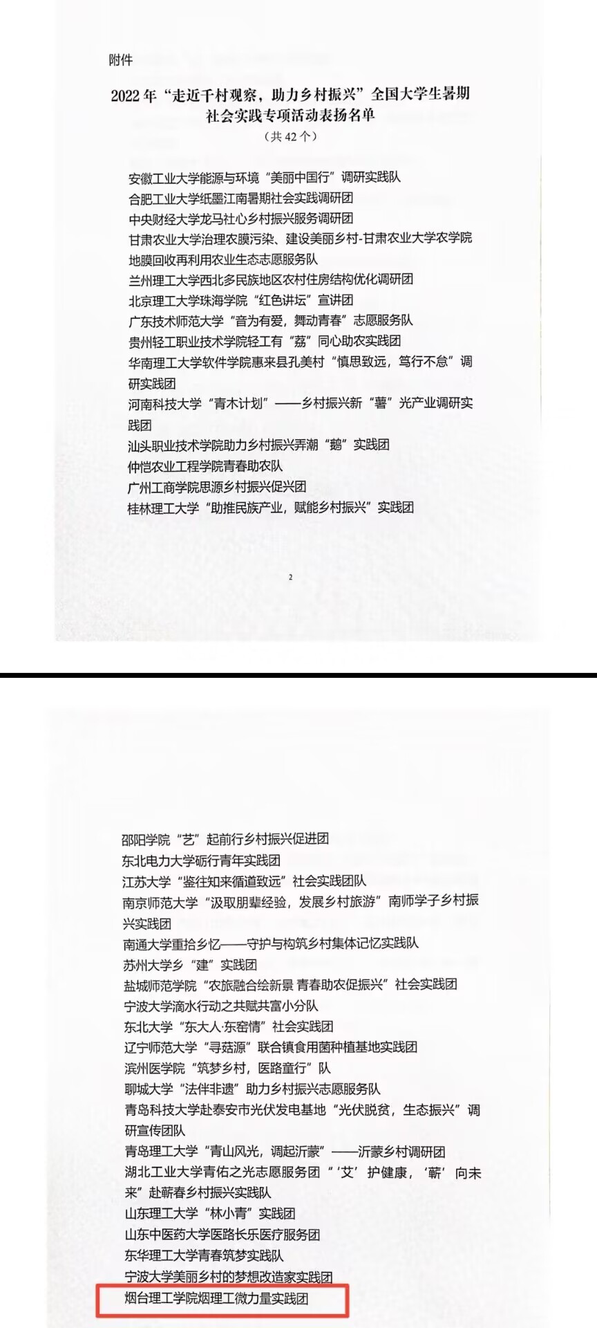 近日,2022年“走进千村观察,助力乡村振兴”全国大学生暑期社会实践专项活动表彰结果公示,全国共42支队伍受到表扬通报。我校“烟理工微力量实践团”名列其中。