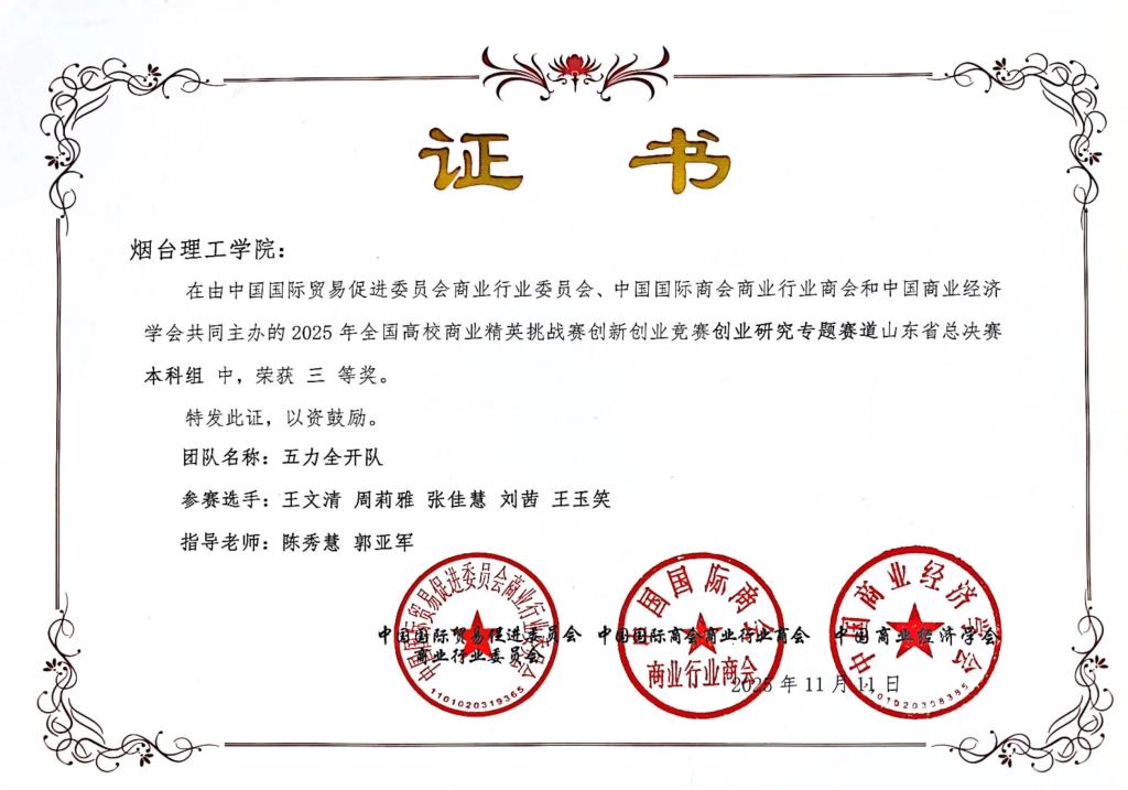 近日,2025年全国高校商业精英挑战赛创新创业竞赛创业研究专题赛道全国总决赛落下帷幕。外国语学院学子凭借扎实的专业素养与创新的跨界思维脱颖而出,斩获国家级二等奖1项,同时在省级赛事中收获一等奖1项、三等奖2项,多项荣誉的取得,充分彰显了我校“语言+”跨界融合培养体系的育人成效。