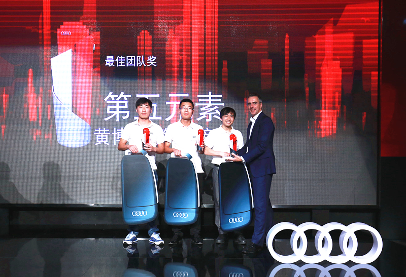 8月2日,2015奥迪创新实验室创新大赛总决赛在北京77剧场成功举办,由我院机电系学子郭彦博、黄博和耿静组成的“第五元素”小组以 “汽车能源共享系统”这一方案从10个创新小组中杀出重围,一举夺冠,获得了奥迪A3 e-tron插电式混合动力车型一年使用权的冠军大奖。除此之外,他们还获得了创业家黑马会一年的免费会籍,并有机会前往巴塞罗那参加奥迪Pilot Driving 活动,参与奥迪未来新车发展话题讨论。