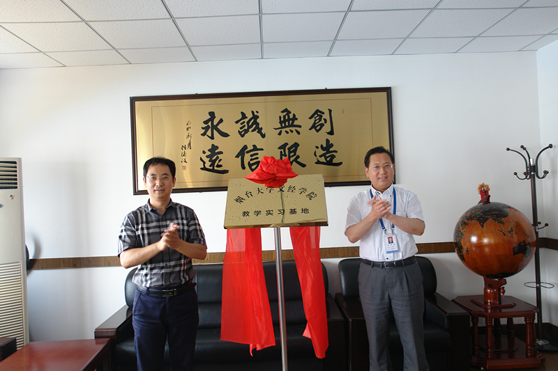 随后,学院院长于光辉与烟台国际经济技术合作集团有限公司董事长刘治波共同签署了合作协议,并为“烟台大学文经学院教学实习基地”揭牌。