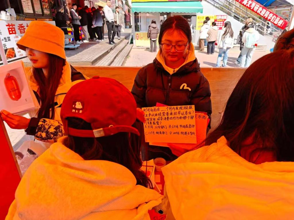 活动现场,后勤处与校团委共同搭建的“消费维权驿站”人头攒动。为了让严肃的法治宣传更接地气,打破传统的展板宣讲模式,精心设置了“烟理工必吃榜”投票、3·15知识问答、慧眼识假·找不同及手机免费贴膜为核心互动环节,将消费维权知识与趣味游戏深度融合。