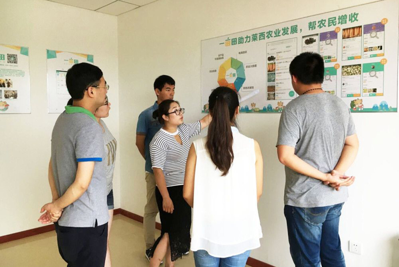 “e+农”调研队走进莱西产业园,走访调研产业园内近十家电子商务企业,了解电子商务发展情况;走进农村淘宝,实地考察农村淘宝运作模式;走进阿里巴巴服务站菜鸟驿站,体验快递整理、分发等工作;走进鲜多多农场,探寻现代农业高科技企业如何通过电子商务平台对有机农业、休闲农业进行开发;走进邹家许村,调研农村电子商务“最后一公里”开展情况,并宣传农业电子商务的惠农政策。